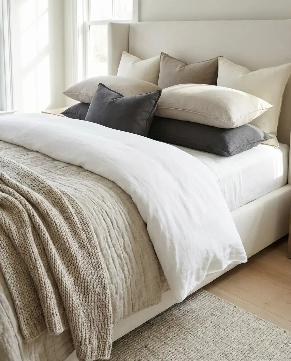 This approach works particularly well in Northeast apartments where winter months demand extra warmth. A common mistake is choosing all lightweight fabrics that look beautiful but don’t deliver on comfort—mixing weights and textures prevents this. Budget-conscious homeowners can start with one quality duvet and gradually add layers from places like HomeGoods or Target, building a curated look over time without the upfront expense of a complete bedroom overhaul.