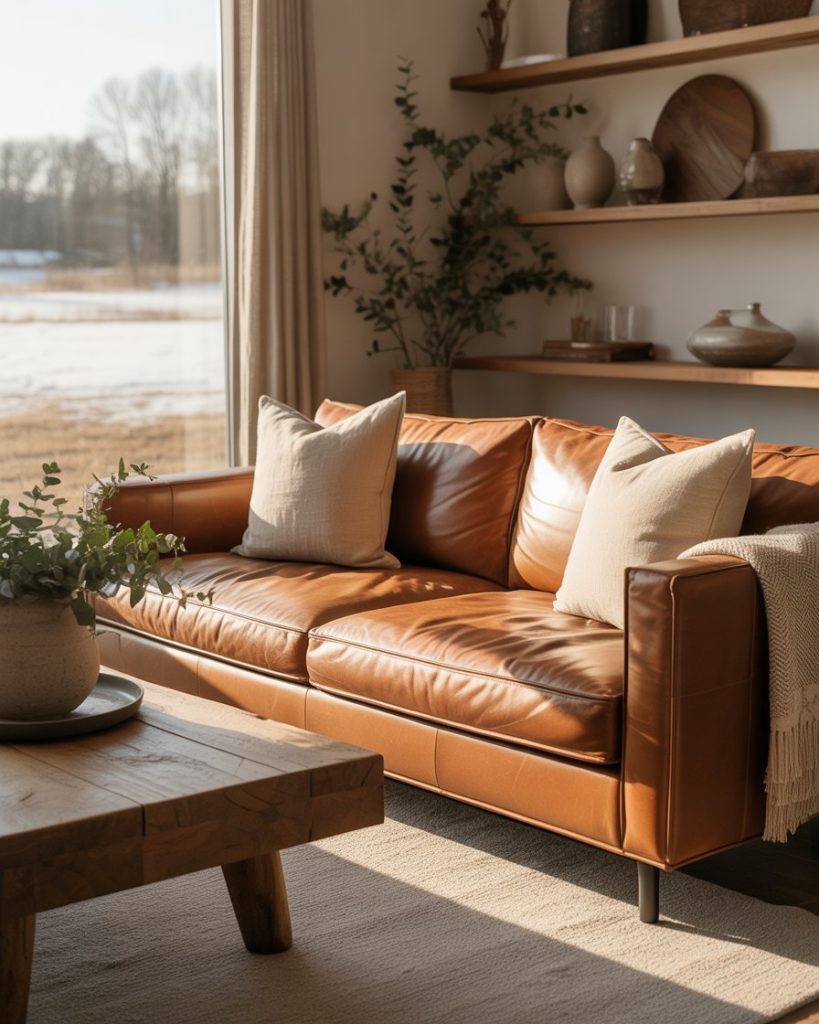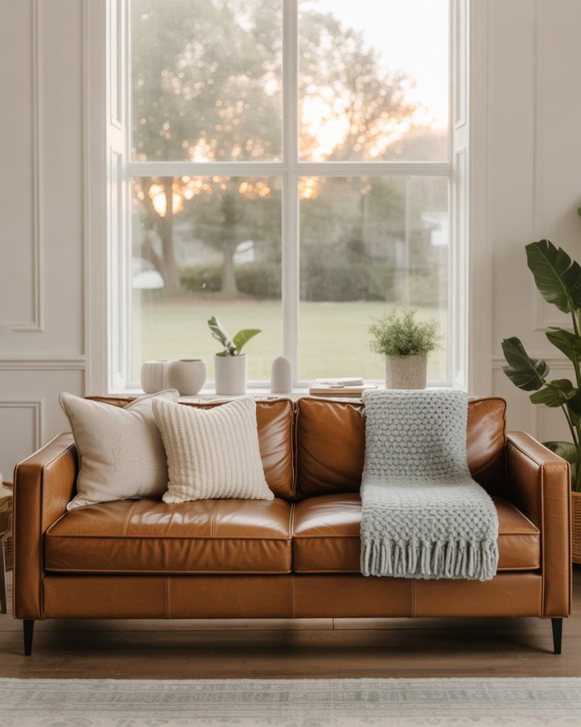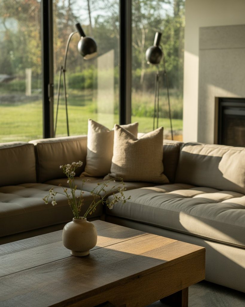 10. Brown Couch Warmth Against the Black Trim Contrast