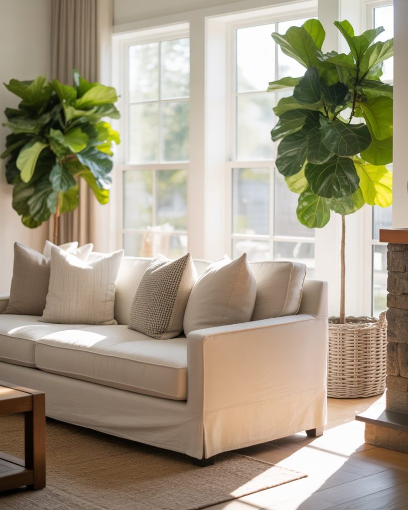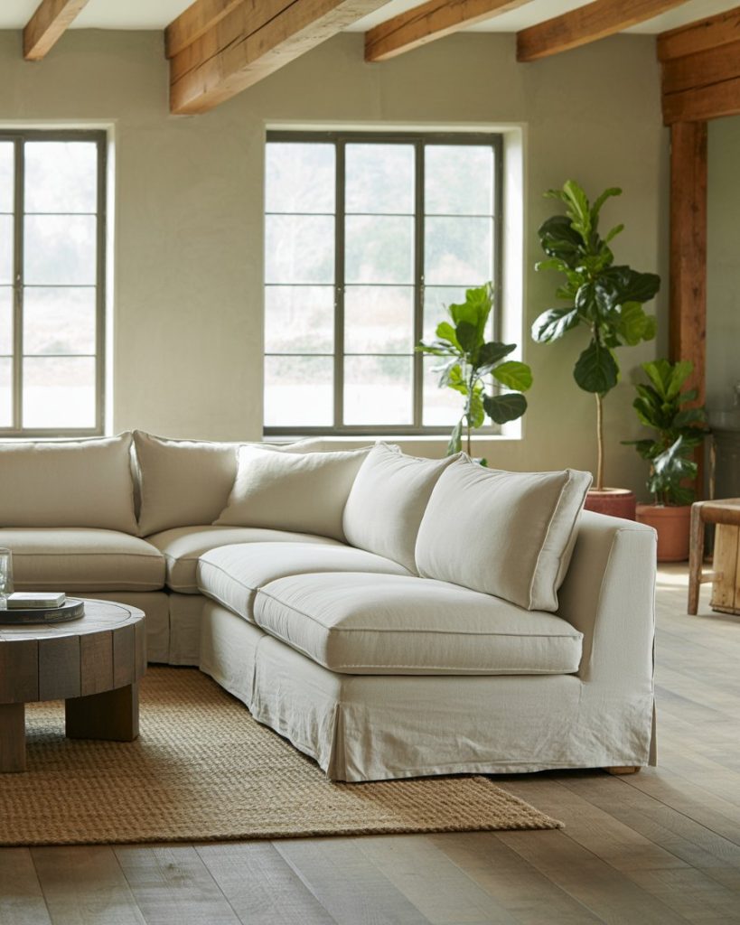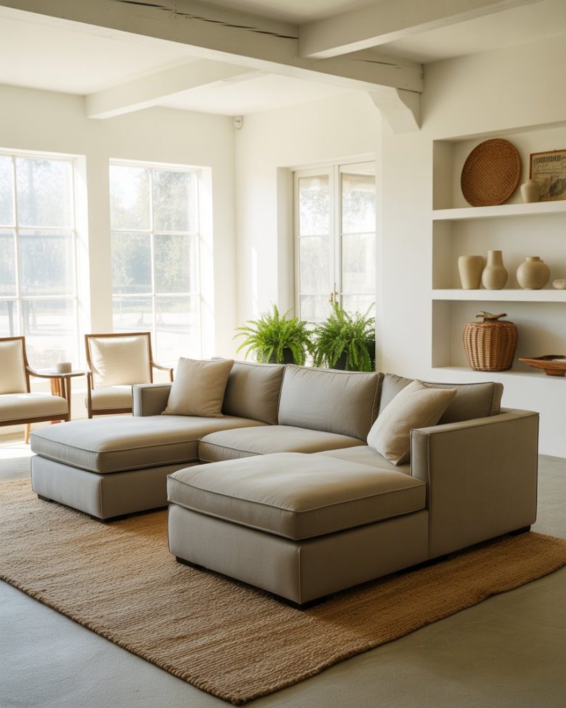 Eco-conscious design defines the modern farmhouse movement. Organic materials like rattan, linen, stone, and reclaimed wood bring tactile calm. Neutral colors — white, brown, and green — symbolize balance and nature. These choices make your space feel timeless and environmentally responsible.
