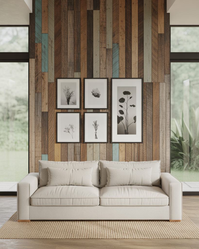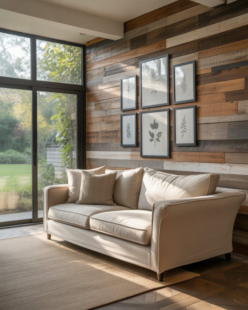 2. Wall Decor Statement: Reclaimed Wood and Gallery Grids