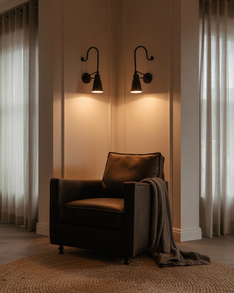 Your layout will shape how a space feels. A dark reading nook framed by black sconces and deep-toned walls feels warm and intimate. Lighter tones, such as white, green, or blue, balance those pockets so they do not get too heavy. The balance brings character to open spaces while maintaining that farmhouse charm.