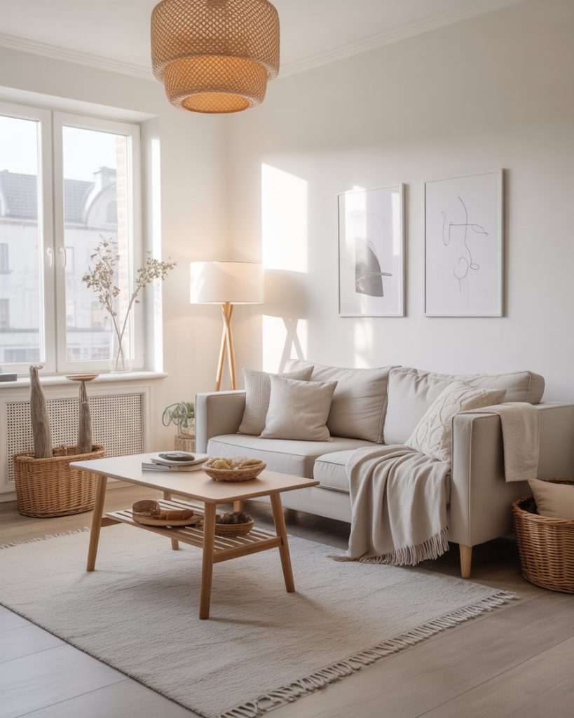 A boho-inspired living room with organic textures creates a space that feels calm and alive. Layer jute rugs, woven baskets, and rattan furniture with soft linens and leafy plants. Stick to natural colors like beige, terracotta, and creamy white for an easy, grounded atmosphere. This approach fits perfectly in any apartment, adding both warmth and personality to daily life.