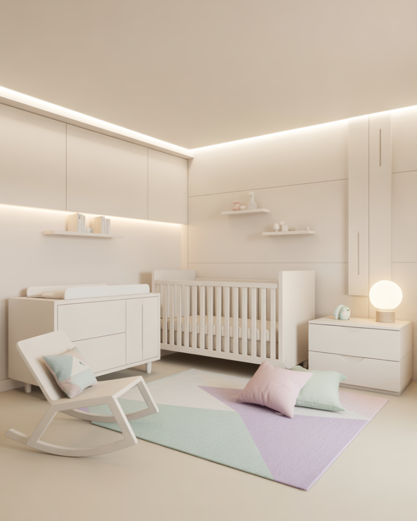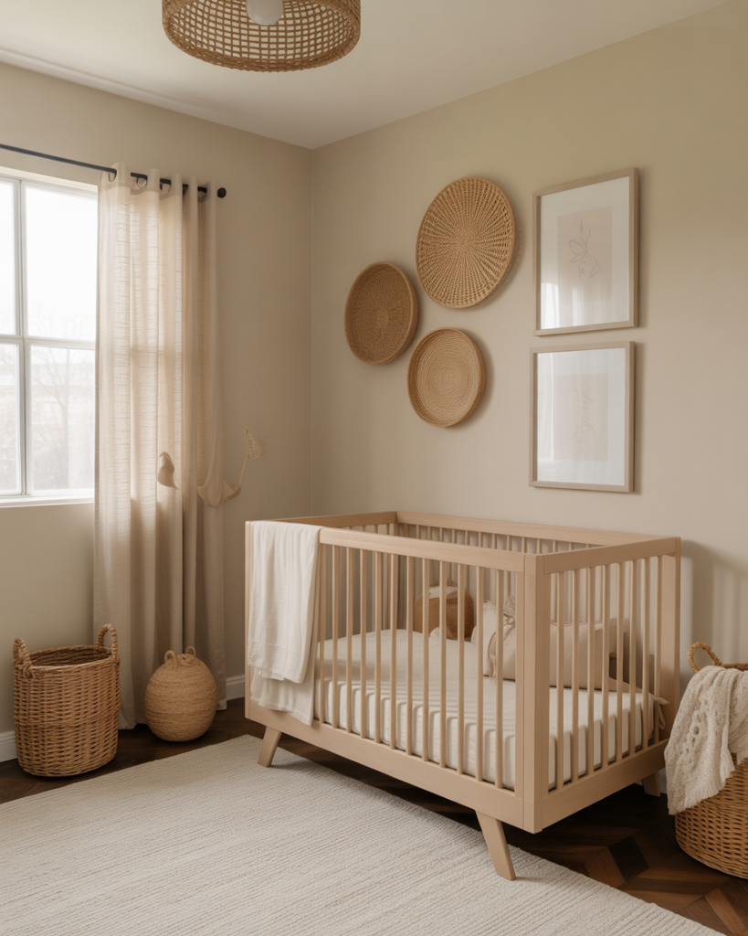 A neutral nursery never goes out of style. Soft beige, ivory, and light grey create a timeless backdrop that feels warm and welcoming. This look emphasizes texture—linen curtains, woven baskets, and natural wood furniture. It’s perfect for parents who prefer a calm, minimal aesthetic that blends easily with the rest of the home.