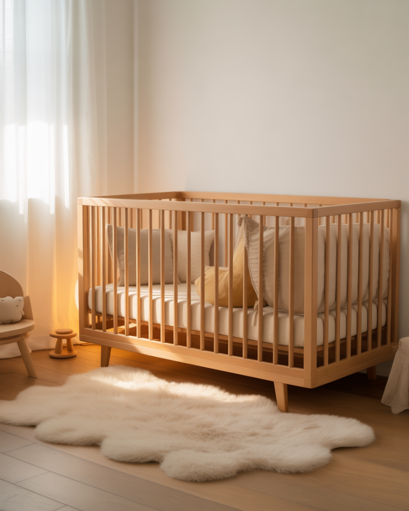 The Scandinavian nursery trend is still going strong for 2026. Imagine light oak furniture, wool rugs, and white walls covered in gentle warm light and layered textiles. A hint of warm glow lighting will enhance the hygge baby space for your baby. The style is simple but comforting and timeless.