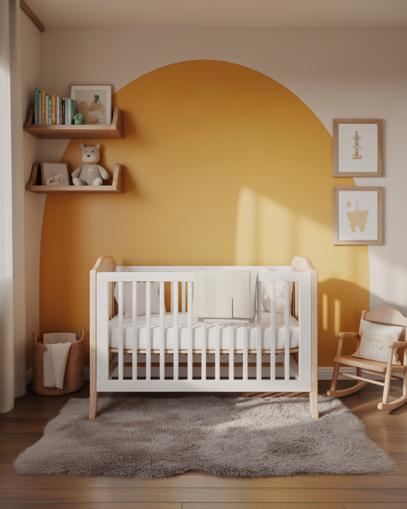 Nothing energizes a nursery like a dose of yellow. From buttery tones to deep mustard, this color radiates joy and positivity. Use it for an accent wall or textiles paired with white or grey. The result is cheerful but balanced—a perfect mood booster for both parents and baby.