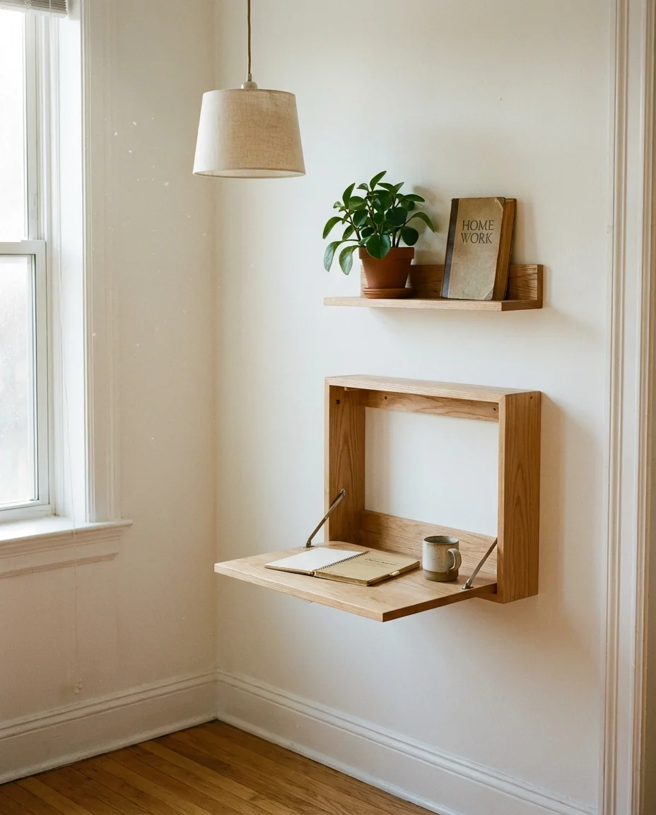 Not everyone has a spare room. In fact, most Americans working from home in cities are doing it from a corner of their living room, the end of a hallway, or a converted closet—and the aesthetic results can be genuinely stunning with the right approach. A wall-mounted fold-down desk, a floating shelf above it, a pendant light overhead, and a small piece of art at eye level: this is a work nook that punches far above its square footage. The trick is treating the nook as its own designed vignette rather than an afterthought squeezed in between the couch and the bookcase.