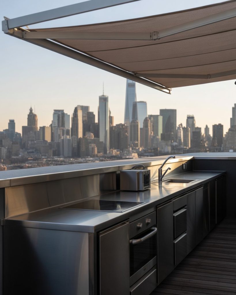 For those in the city, a small-space DIY rooftop kitchen proves that luxury doesn’t require a lawn. Foldable furniture and slim steel counters maximize room while maintaining a sleek modern look. Adding a covered awning allows grilling under any weather. A designer from New York once said, “Cooking with a skyline beats any restaurant view.” It’s the perfect mix of style and independence.