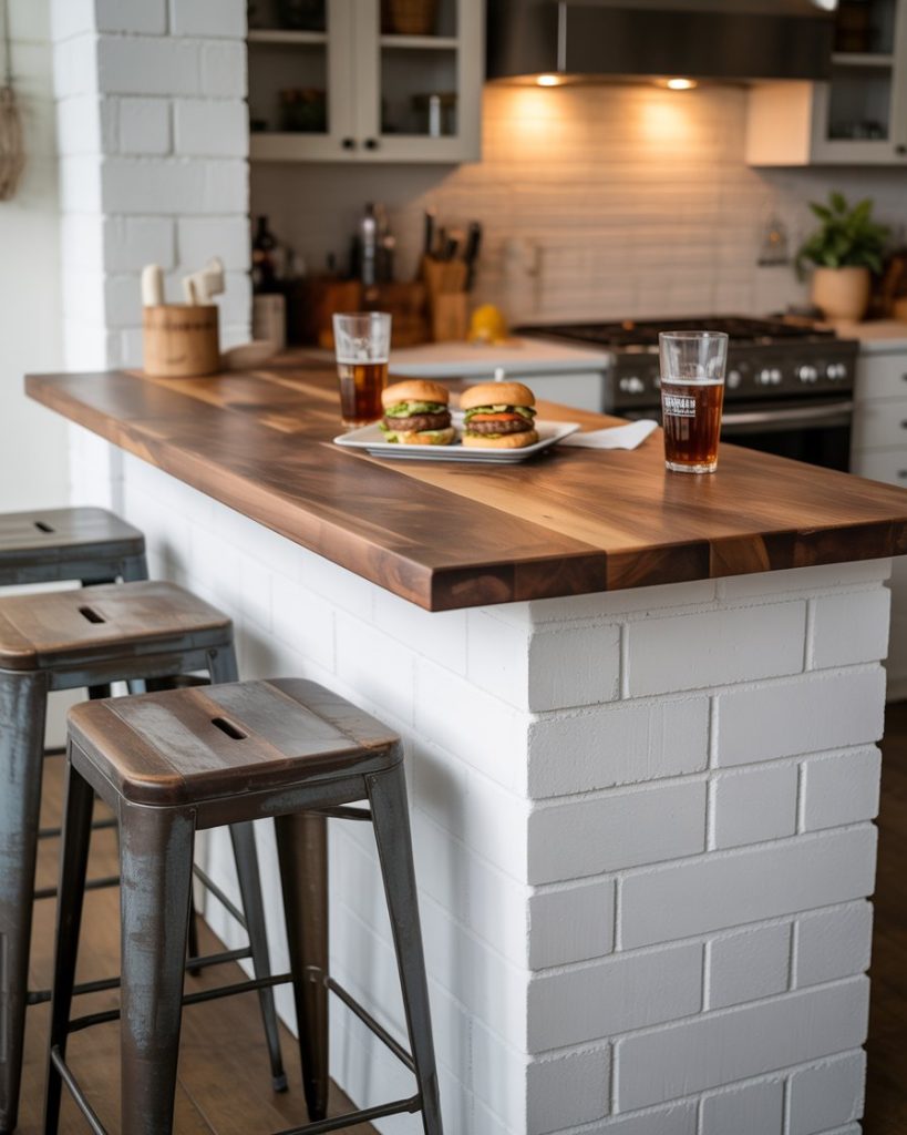 For those seeking budget-friendly creativity, a cinderblock kitchen bar offers character without high cost. Paint blocks white, add a wood plank top, and use metal stools for charm. It’s a DIY project anyone can manage in a weekend. My uncle built his for under $300 and still hosts legendary burgers every Friday. Function meets pride in every handmade joint.