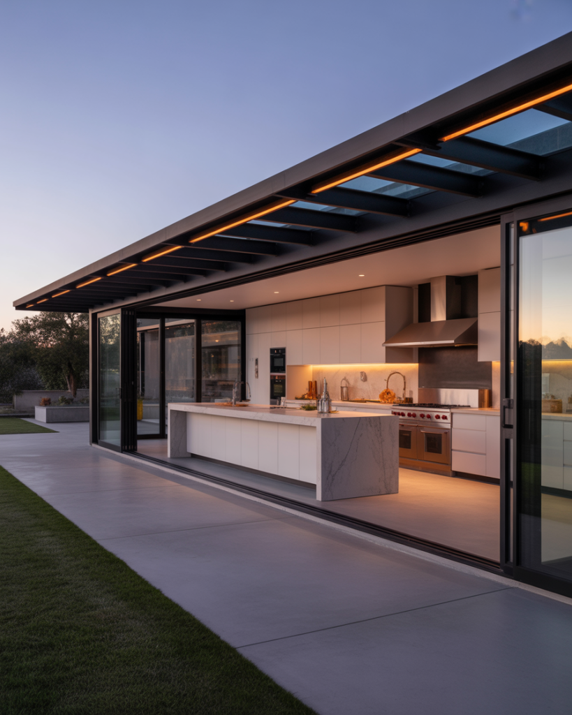 Blending indoor convenience with outdoor air is trending hard. Matching counters, sliding glass walls, and overhead heaters let you grill through winter without feeling exiled. A designer friend says the trick is visual continuity—same stools, same tile, one bigger sky. Great for four-season states where February ribs taste better than summer lines at a restaurant.
