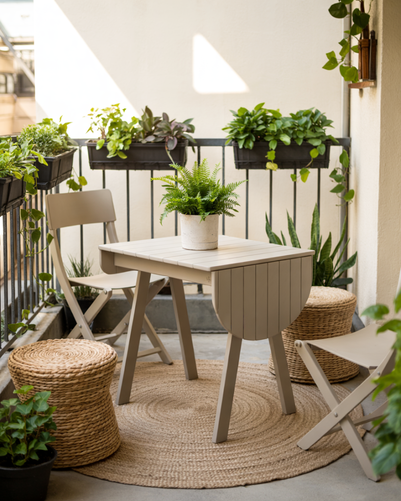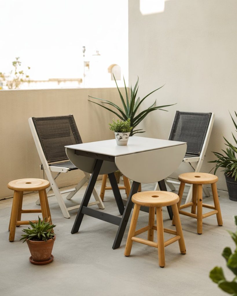 A small patio can feel twice as big with folding chairs, drop-leaf tables, and stackable stools. I once lived in a studio where every outdoor piece had to collapse before storms came in, and the flexibility was priceless. Choose lightweight metal or teak so the set lasts, and add a wall-mounted shelf to hold drinks without taking floor space. Perfect for renters who need fast setup, fast cleanup, and zero storage drama.