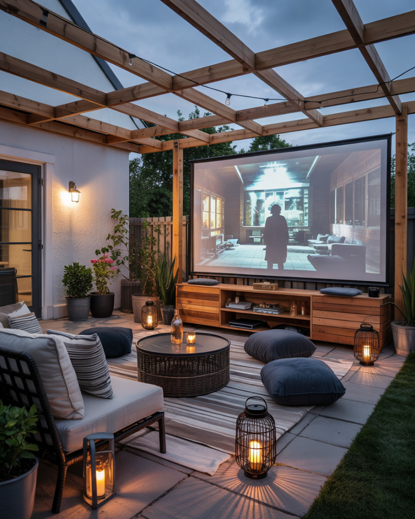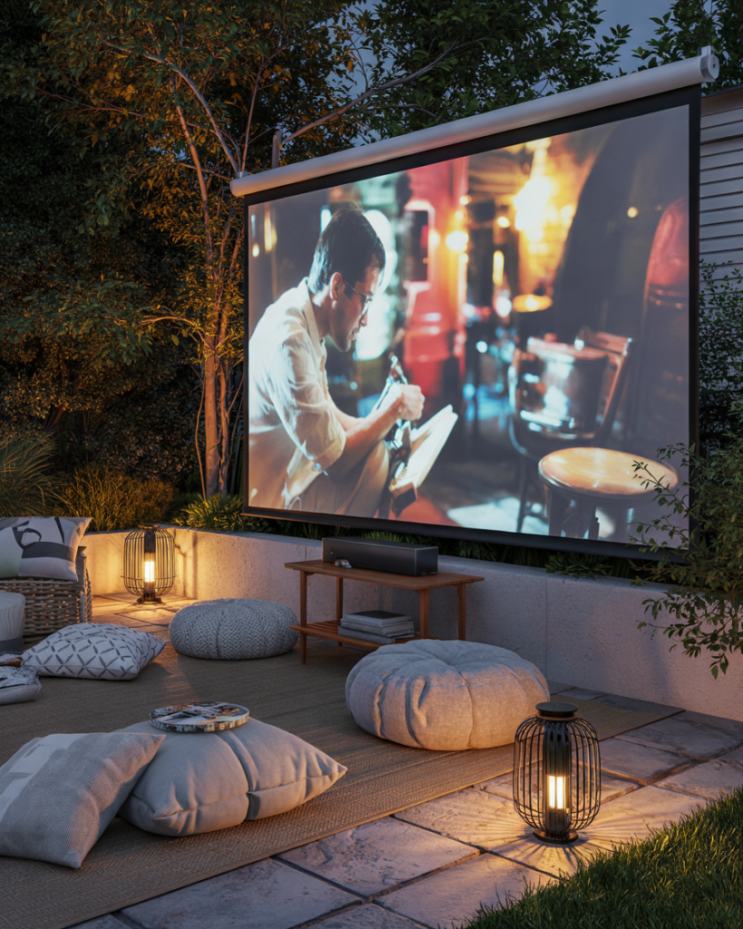 Turn a backyard or covered patio into a mini cinema with a roll-down screen, Bluetooth speaker, and floor cushions. I hosted movie nights this way, and neighbors brought popcorn instead of complaints. Use battery lanterns for aisle-style lighting and a weatherproof storage box for gear. Works for families, date nights, or sports watch parties without going indoors.