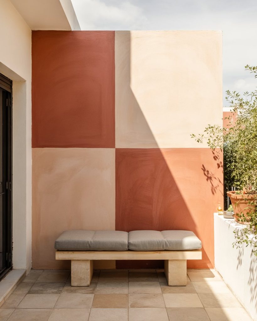 Block color combination painted walls can perform aesthetic and emotional miracles on a patio as quickly as its furniture. Try using soft terracotta and blush walls, and arch a classy block to complement the new patio furniture. Great for renters using peel-and stick panels, or owners do not mind letting the paint flow.