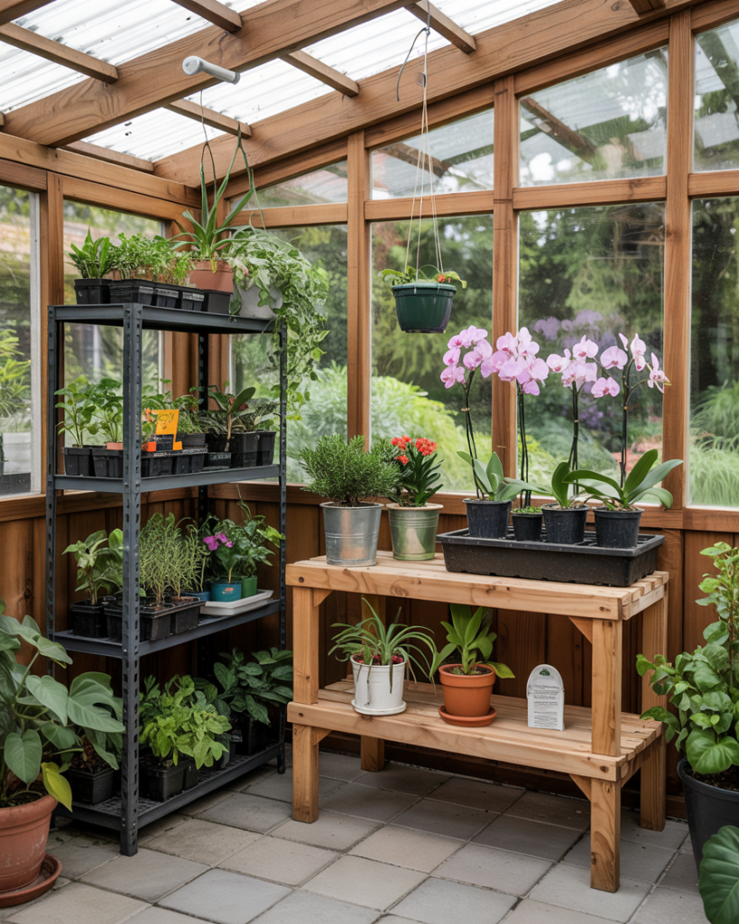 A screened-in patio can double as a plant nursery—humidity stays in, and bugs stay out. I kept herbs, orchids, and a propagation shelf alive all winter this way. Add a narrow potting table and misting bottle for hands-on gardening without dirt in the kitchen.