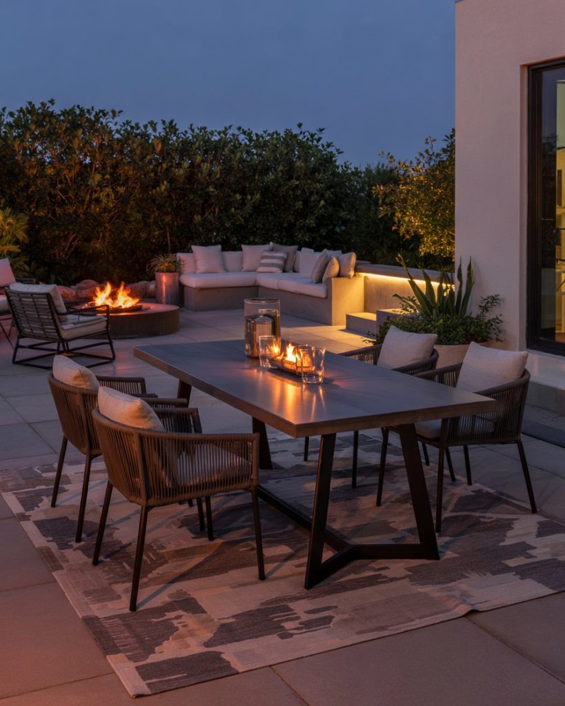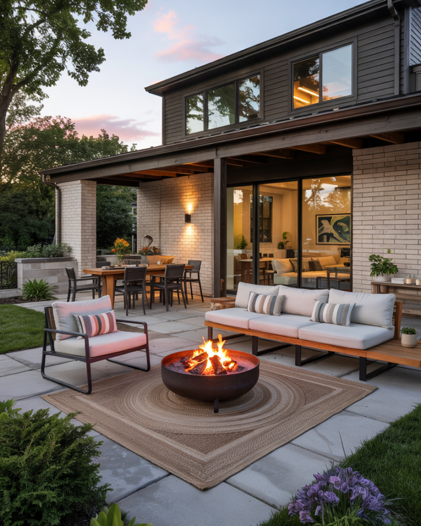 A large patio works best when divided into zones—dining, firepit, and lounge—so guests know where to gather. Outdoor rugs act like walls without blocking the view. I’ve hosted parties where flow improved instantly just by rearranging furniture into clusters. Best for social hosts who want friends to wander, mingle, and stay late.