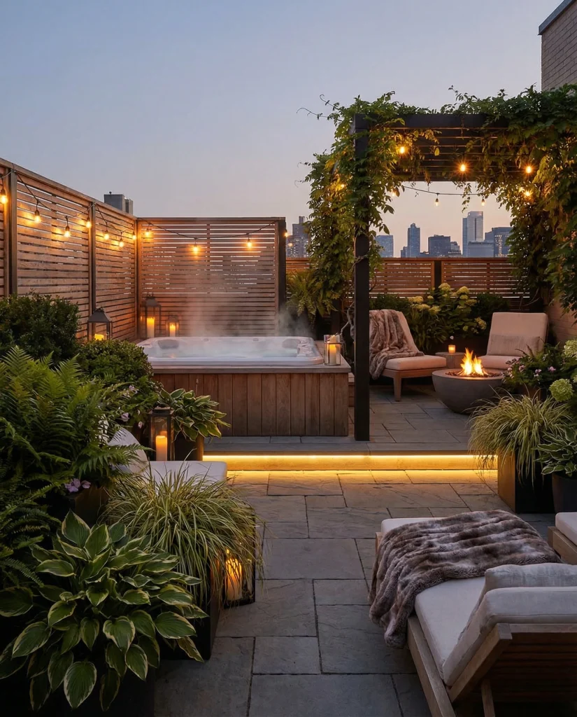 An outdoor hot tub area transforms any backyard or rooftop patio into a personal spa. Designers note that incorporating privacy screens, paver platforms, and subtle lighting enhances the mood. Whether inspired by mountain retreats or urban penthouses, this style suits homeowners who value wellness. I’ve seen people integrate plants and stone borders to make the tub feel like part of the surrounding garden.