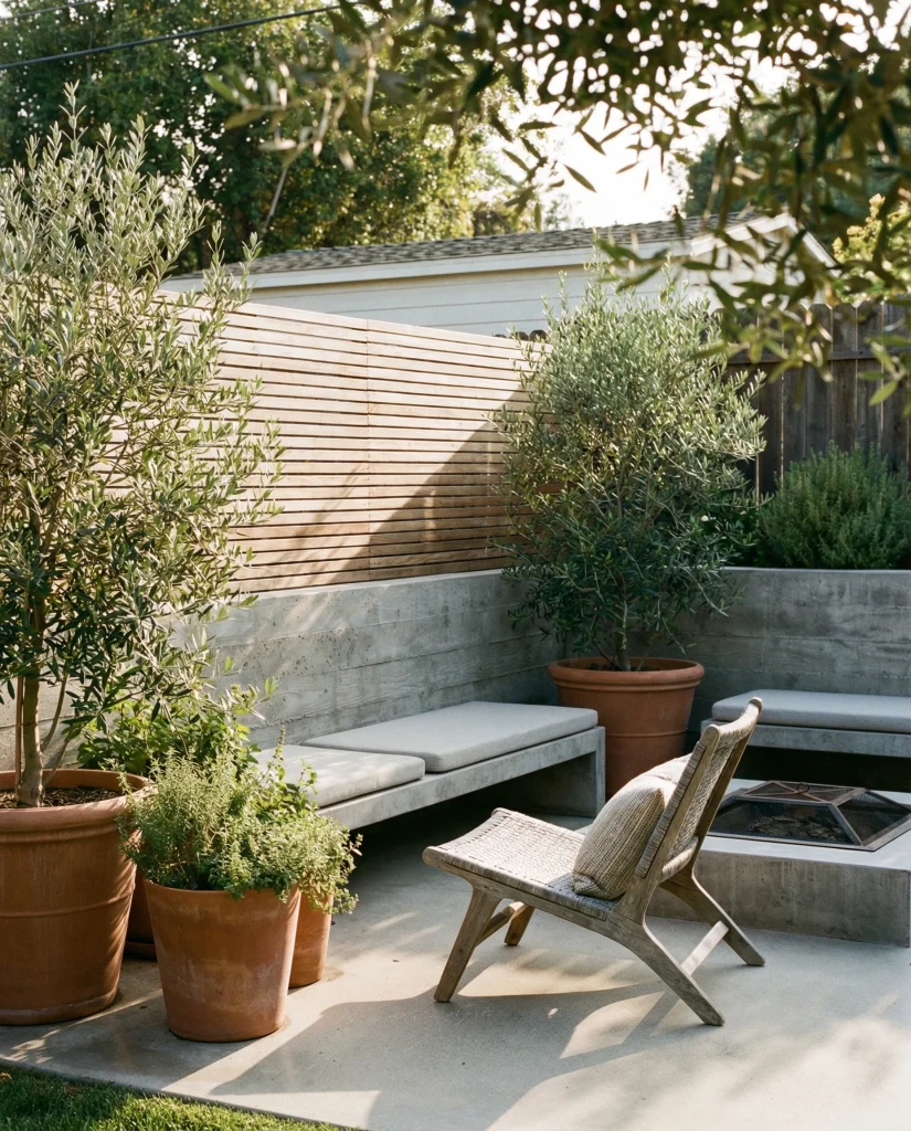 A combination of concrete and warm wood tones has become a favorite across modern patios and small backyard makeovers. This blend creates balance—industrial durability meets natural comfort. Many landscape bloggers suggest using smooth concrete pads with wooden benches or fencing for contrast. It’s a great solution for homeowners seeking a stylish layout that feels grounded yet inviting.