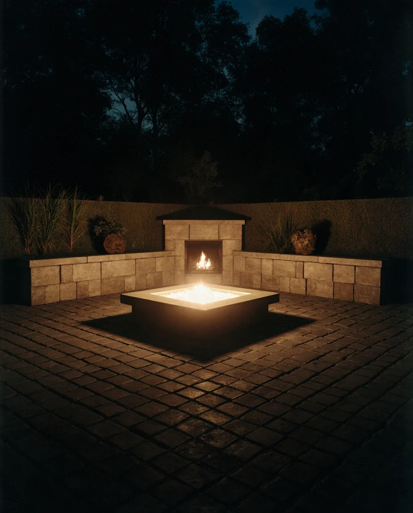 Creating a compact lounge space with square pavers around a built-in fire pit brings warmth and intention to a yard. Using stone or concrete squares arranged symmetrically supports a clean aesthetic. Friends often tell me this is where their most meaningful conversations happen after sunset.