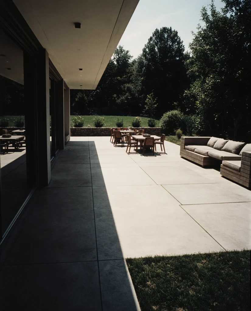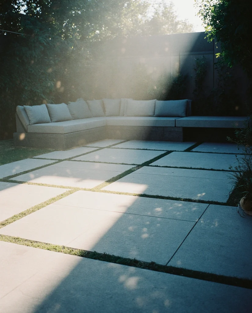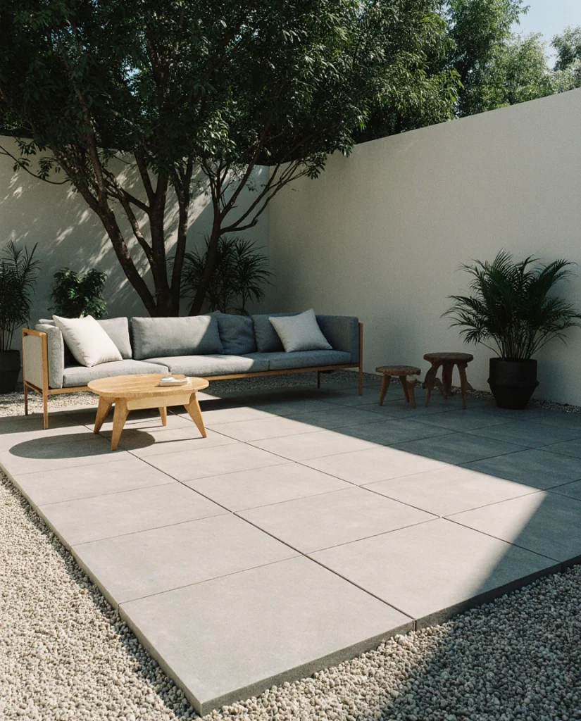 A sleek A modern platform of smooth cement pavers creates a contemporary stage for gatherings. Pairing it with minimal décor and clean lines suits homeowners who prefer simplicity. I’ve noticed this idea becoming especially popular in new builds and urban homes.