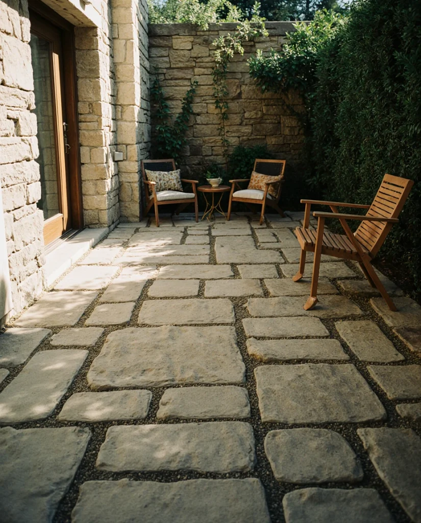 Mixing shapes, textures, and tones of stone is perfect for DIY enthusiasts who enjoy hands-on weekend projects. These patios often embrace imperfect beauty, giving the yard a relaxed, lived-in feel. Friends who’ve tried this approach love how personal the final design becomes.