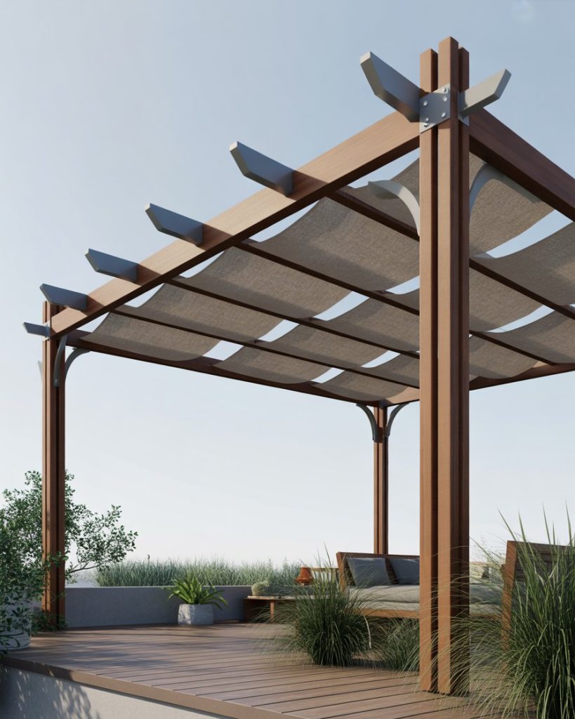 A Toja Grid pergola is a standout choice for DIYers because of its modular steel brackets that simplify construction. Many homeowners prefer it for a budget makeover, pairing it with wooden posts and shade sails. It suits patios, decks, and even attached configurations. Its clean lines and flexibility make it a favorite among YouTubers reviewing quick outdoor upgrades.