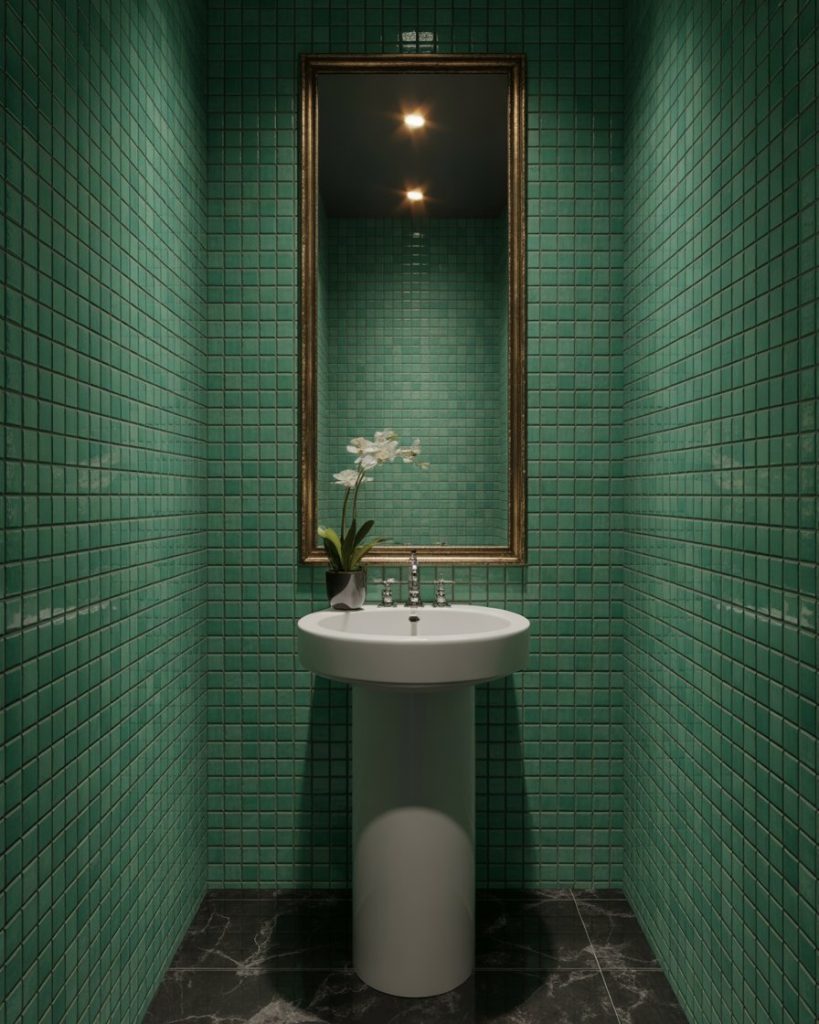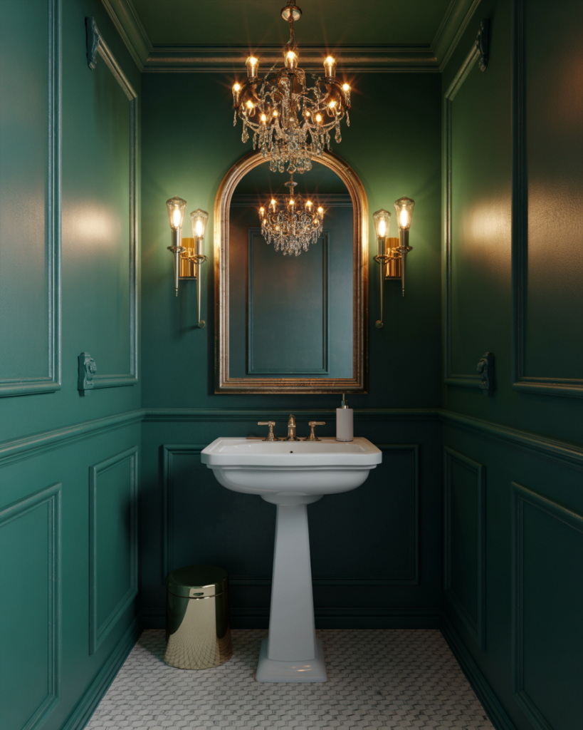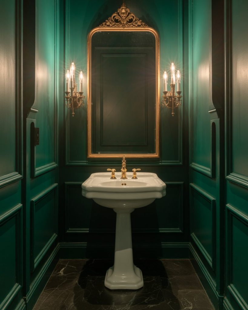 1. Moody Jewel-Toned Powder Room