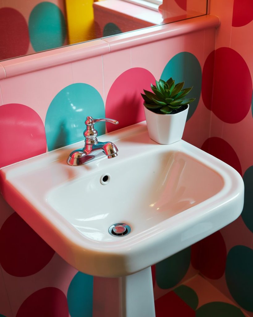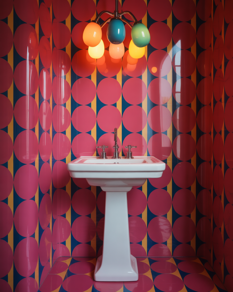 Have big fun and express your originality with bright hues and graphic patterns. A bold wallpaper in citrus yellow, coral, or blue will instantly energize a smaller space. A minimalistic pedestal sink keeps all attention on the artwork. Just right for anyone who wants their guest bathroom to get conversations started.
