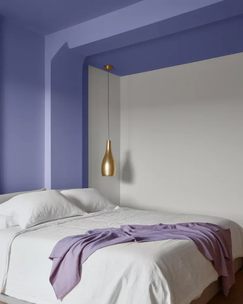 The painted ceiling is one of the most moody and transformative bedroom moves of 2026 — and purple might be its ultimate expression. While everyone else is painting their walls, you paint the ceiling a deep lavender, a soft violet, or a dramatic plum, and keep the walls white or cream. Suddenly, the room has an intimate quality it didn’t have before: the ceiling lowers visually, the space feels enclosed and personal, and the purple cast gives the room a quality of light that changes at every hour of the day.