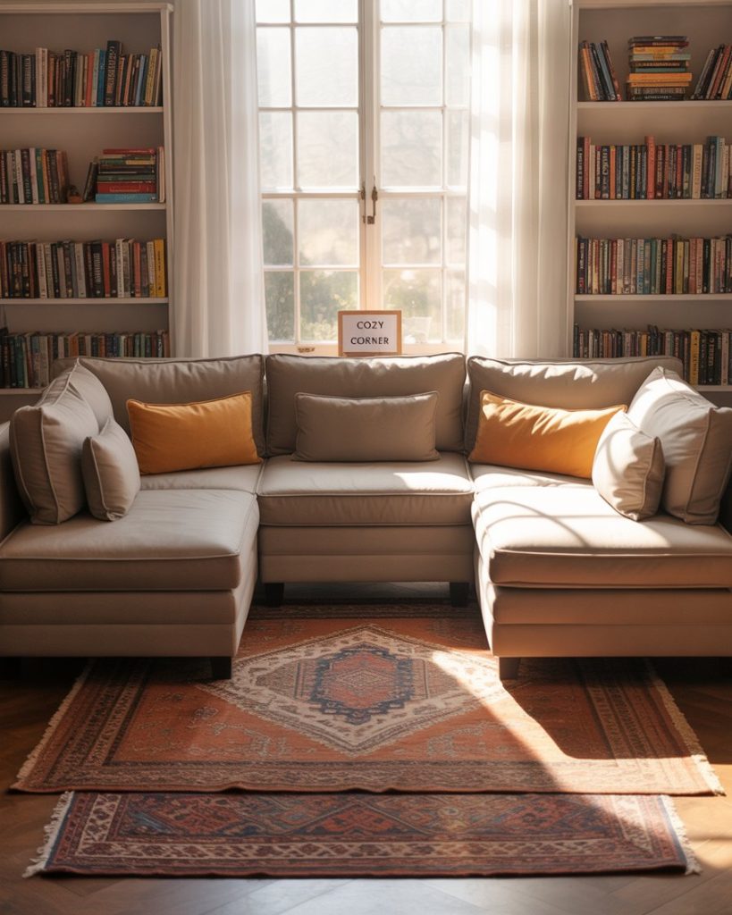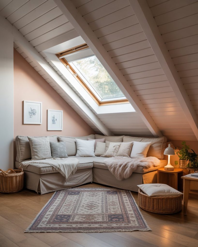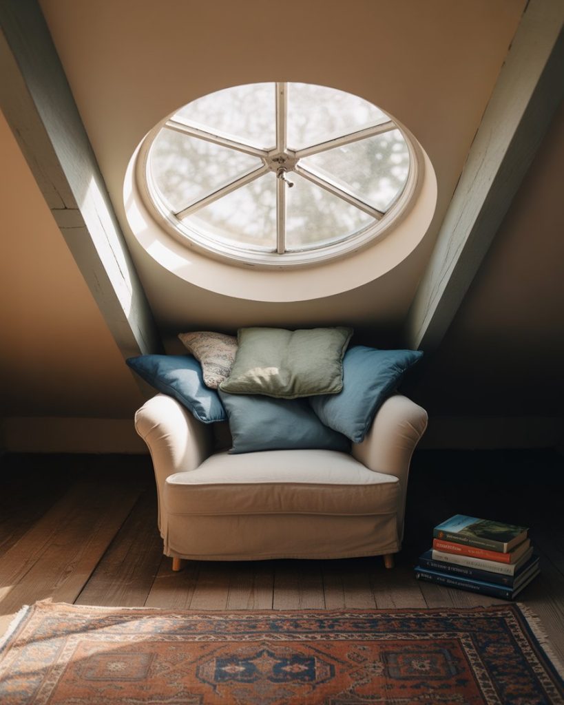 Unused attic space can transform into a hidden gem for book lovers. Slanted ceilings, skylights, and tucked-away alcoves create a sense of escape. With layered rugs and soft lighting, this idea adds charm while maximizing home space. Perfect for both kids seeking adventure and adults wanting a cozy retreat away from the bustle of living room life.
