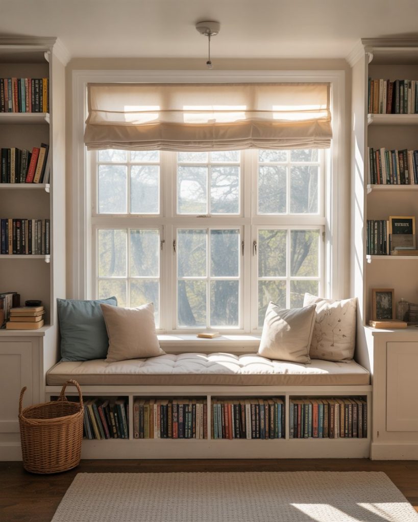 Window seats never go out of style. In classroom elementary schools or homes, a cushioned bench beneath a wide window creates a natural reading haven. Children enjoy watching the world outside between book chapters, while adults value the mix of natural light and comfort. This is a simple yet powerful way to encourage daily reading.