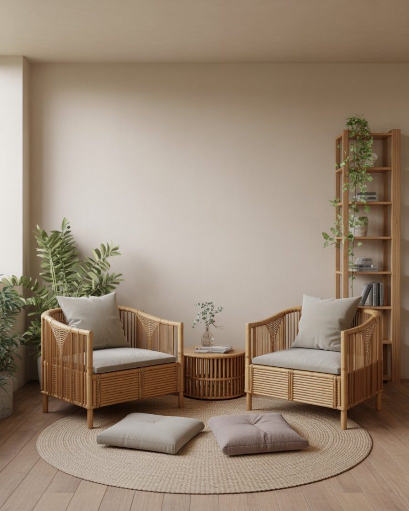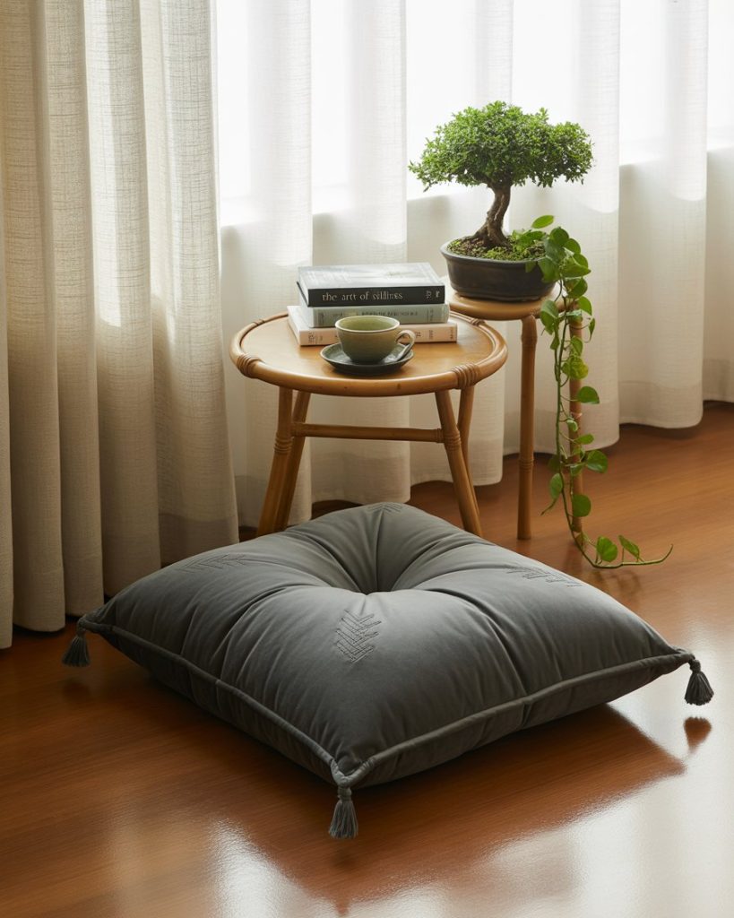 A Zen reading corner focuses on mindfulness. In an adults living room, natural bamboo furniture, floor cushions, and indoor plants set the tone. A few well-chosen book titles on meditation or wellness make it feel intentional. This type of corner is particularly appealing to adults seeking balance in their cozy home life.