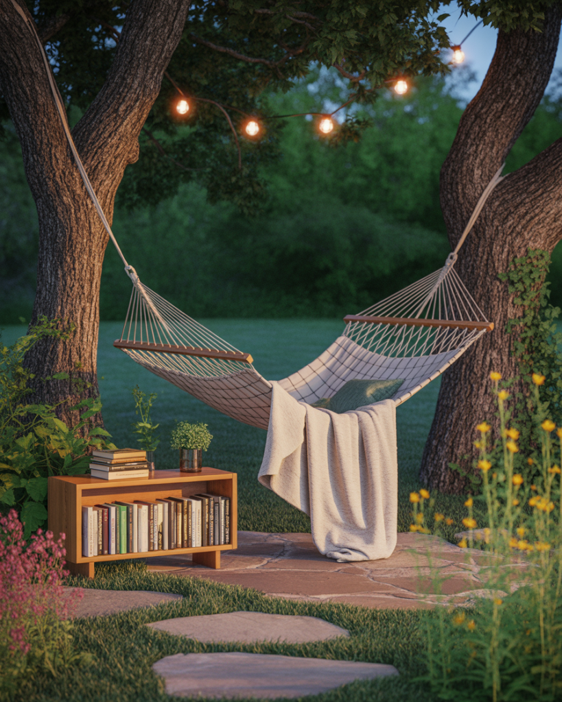 A cozy backyard reading corner brings literature outdoors. Imagine a hammock strung between trees, lantern lights, and a stack of your favorite book selections. Perfect for long summer afternoons or quiet spring mornings, this idea marries fresh air with relaxation. It works especially well in climates where porches and patios are extensions of the home.