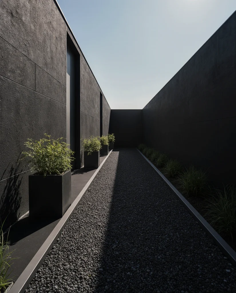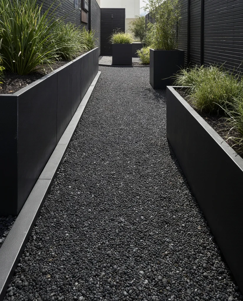 The ultra-impactful black gravel works wonders for stripping out the entire tiny side yard, converting it into radiantly sleek low-maintenance nothing, topped up against any form of natural boundary at the peripheral edge. The rugged darks are great under potted plants or metallic edging, likening to the rather accident-free nature it dowses around tight spaces. Homeowners love it as it scatters underfoot while enriching the place without naught of the prefix.’ [/IMG_PLACEHOLDER]