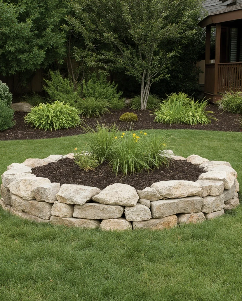 Building a circular garden bed with fieldstone is intended to be a timeless piece of attraction in the yard. The nonuniformed placement feels like the muscles of nature, lending a very personal, human dimension to space. That type of garden bed inseparably knits beauty to functionability.
