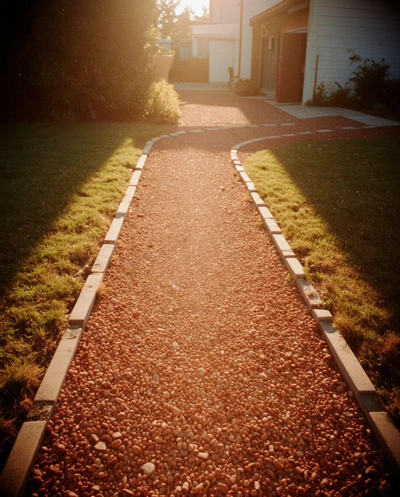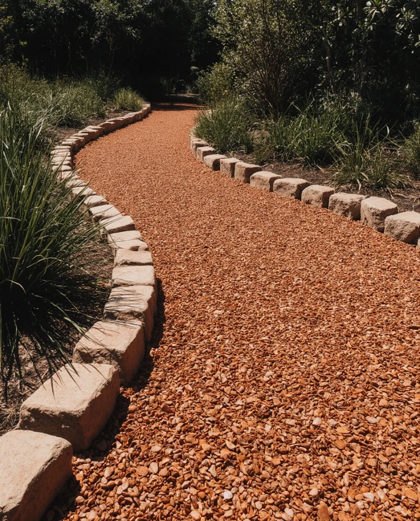 A path made from red stone chips is perfect for brightening narrow spaces or connecting garden zones. The vibrant color contrasts beautifully with greenery and offers a lively twist to traditional rock paths. It remains durable even in high-traffic areas.