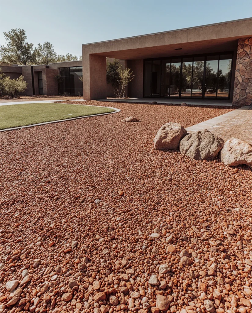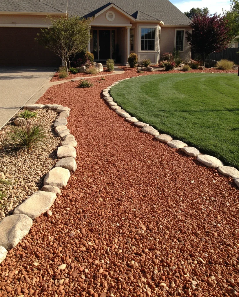Choosing red or red lava stone brings warmth and dimension to an outdoor landscape. It works beautifully across a front lawn, especially near neutral siding or fieldstone homes. Its earthy glow adds personality without overwhelming the design, making it a popular choice for homeowners wanting color with longevity.