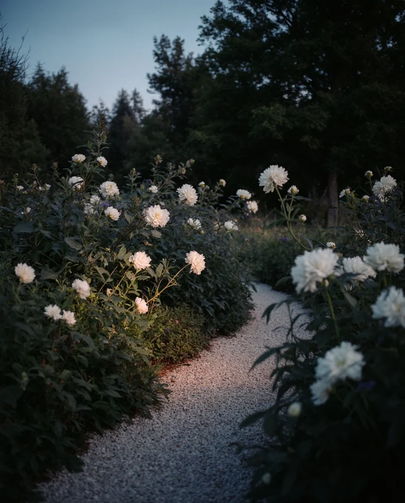 This works best along the edges of patios or near seating areas you use for evening entertaining, particularly in Southern and Southwestern climates where outdoor living extends well into the night. Many American gardeners are surprised to learn that white gardens actually require less supplemental lighting than colorful ones—the pale flowers and foliage naturally reflect available light from windows, street lamps, or even a quarter moon. Plant night-blooming jasmine or angel’s trumpet near bedroom windows for natural aromatherapy that drifts in on summer breezes.