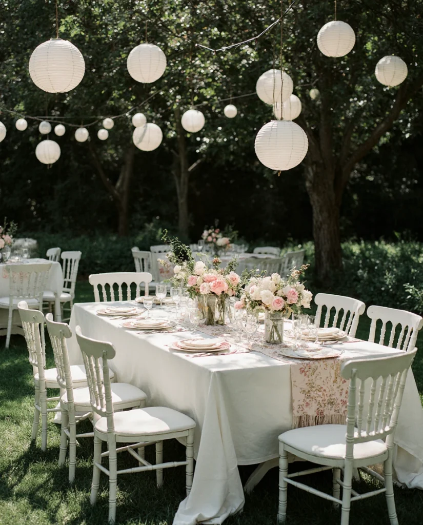 Common mistakes and how to avoid them: many people over-decorate when the garden itself is already the star. Instead of adding balloons and synthetic decorations that clash with the natural setting, work with what’s there—use garden roses and hydrangeas for arrangements, hang simple string lights or paper lanterns from branches, and choose linens and tableware in colors that complement your existing plantings. The most successful garden parties feel effortless because they embrace rather than compete with the outdoor setting. Have a backup rain plan, but don’t let fear of weather prevent you from using this beautiful space for celebrations.