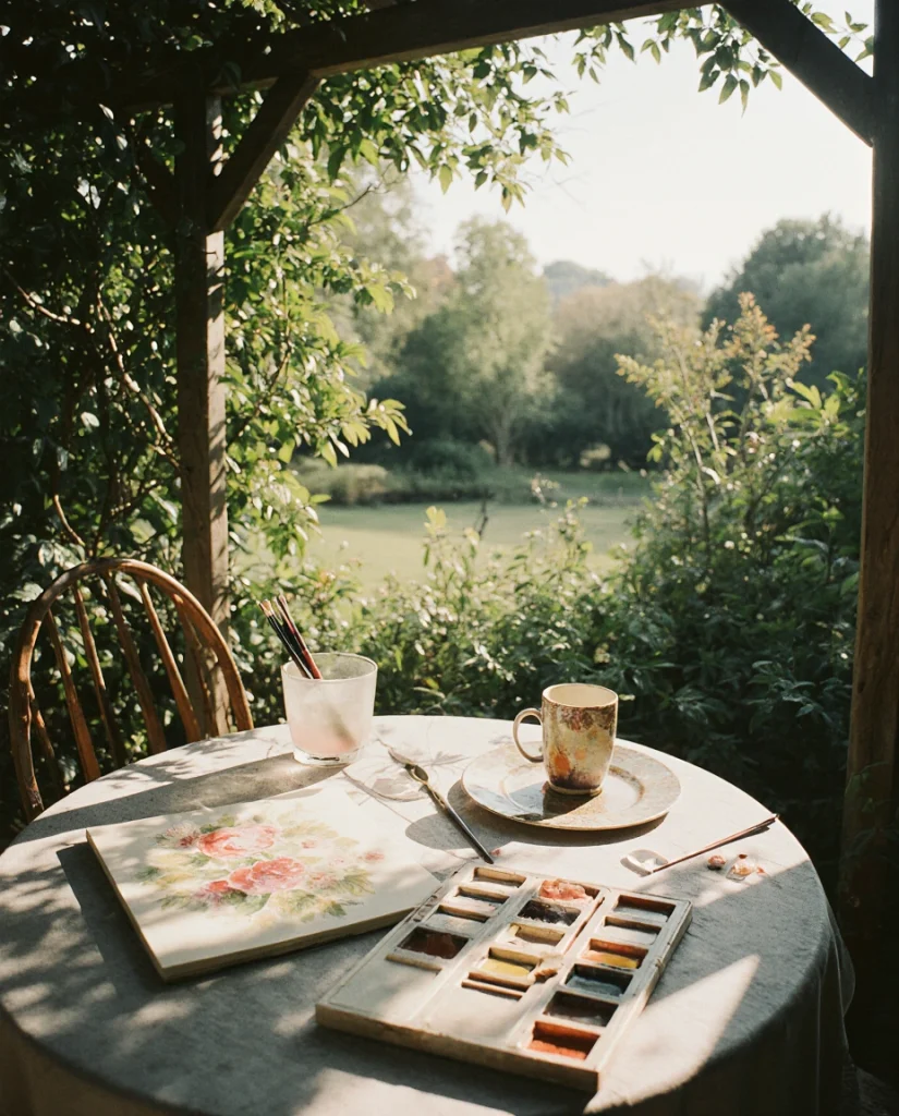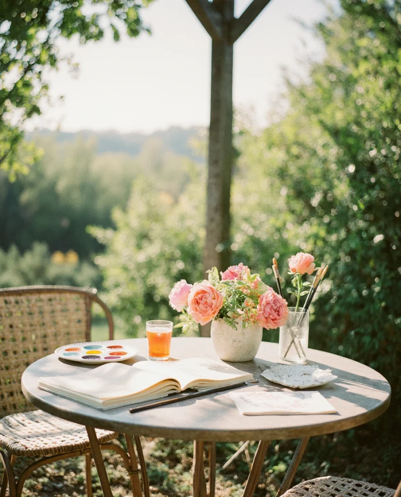 Create a dedicated outdoor spot where you can sit and sketch your garden, channeling the detailed drawing and painting style of botanical artists. Position a small table and chair where you have good light and inspiring views of your best plantings—this becomes your nature observation post. Keep watercolors, colored pencils, or your journal here in a weatherproof container, making it easy to capture the garden’s evolution through the seasons. The act of drawing what you’ve planted helps you notice details you’d otherwise miss and creates a beautiful record of your garden’s development.