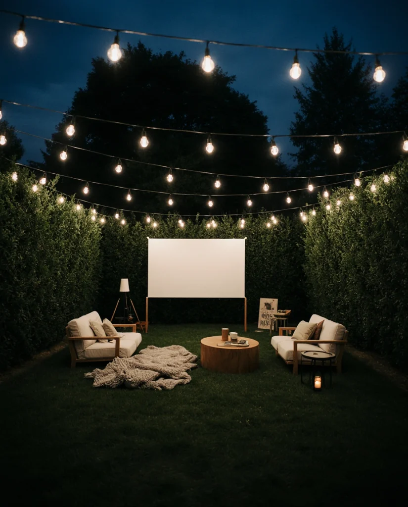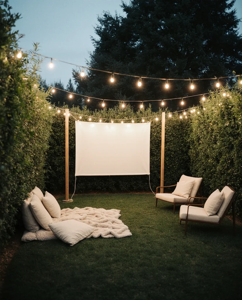 17. Cozy Outdoor Movie Garden Corner