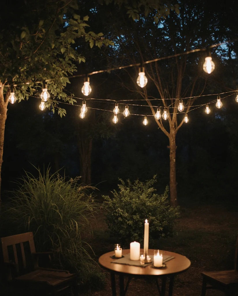20. Garden Party Lighting with Vintage Fixtures