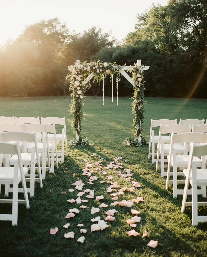 Transform a hidden corner of your property into an enchanting wedding venue that feels worlds away from everyday life. The wedding theme centered around secret gardens has exploded on Pinterest, with couples seeking intimate ceremonies surrounded by lush blooms, vintage furniture, and romantic candlelight. Create a natural aisle using low hedges or flower borders, and position a weathered arch or garden folly as the ceremony focal point. The overgrown, slightly wild aesthetic provides the perfect backdrop for vows that feel deeply personal and magical.