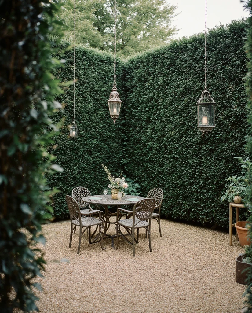 This concept works best in properties with at least 300 square feet to dedicate, though you can create a convincing version in smaller spaces using fast-growing evergreen shrubs like Leyland cypress or bamboo (contained in barriers to prevent spreading). Many American homeowners in dense neighborhoods use this technique to carve out privacy without the expense or permanence of installing tall fencing. Expert tip: plant your hedge walls in a gentle curve rather than straight lines—the irregular shape feels more organic and actually makes the space feel larger by hiding the true dimensions.