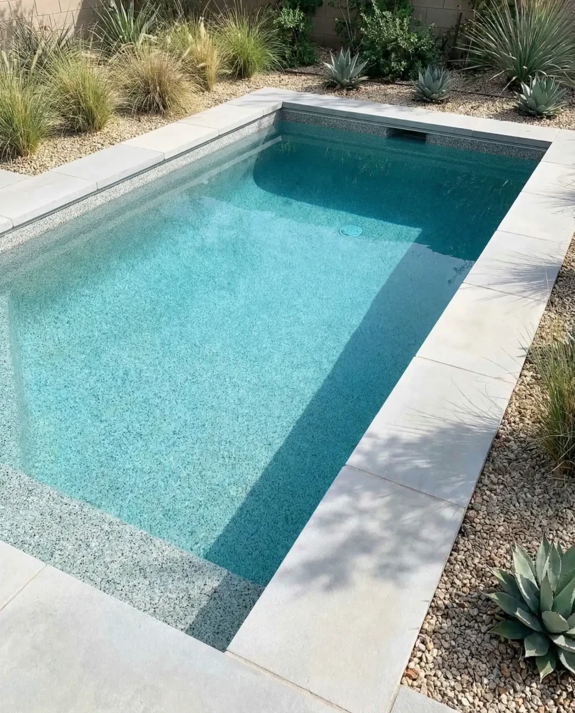 Enclosed courtyards transform small pools into private sanctuaries, with design ideas rooted in Spanish and Mediterranean traditions. Hand-painted ceramic tiles in cobalt blue or terra cotta line the waterline, while stucco walls and climbing bougainvillea complete the look. The landscaping leans into drought-tolerant plants like lavender and rosemary, which thrive in the sun-drenched environment and release fragrance as you brush past them.