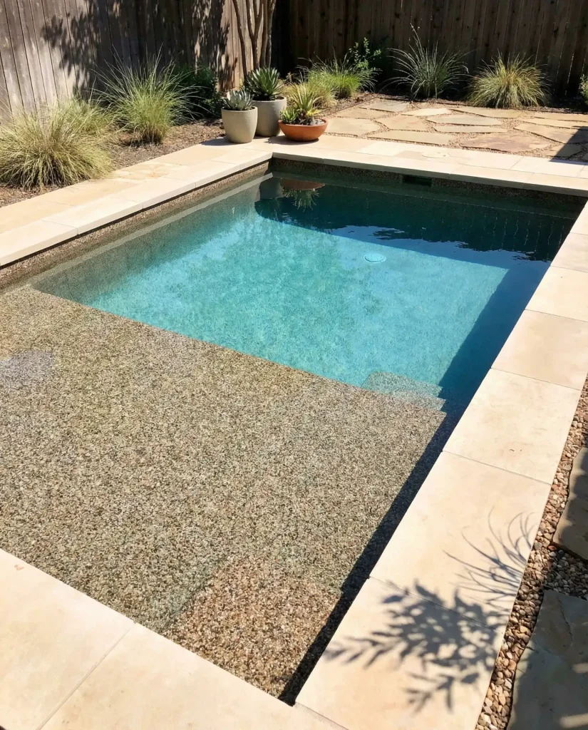 Cocktail pools blend the cooling benefits of a small pool with the therapeutic jets of a hot tub, all in one compact structure. These hybrids typically measure 10 by 14 feet and include a raised bench with massage jets at one end. The design ideas here revolve around dual-purpose functionality—daytime lounging transitions seamlessly into evening hydrotherapy. Positioning the pool near the patio ideas zone extends your entertaining footprint without sacrificing green space.