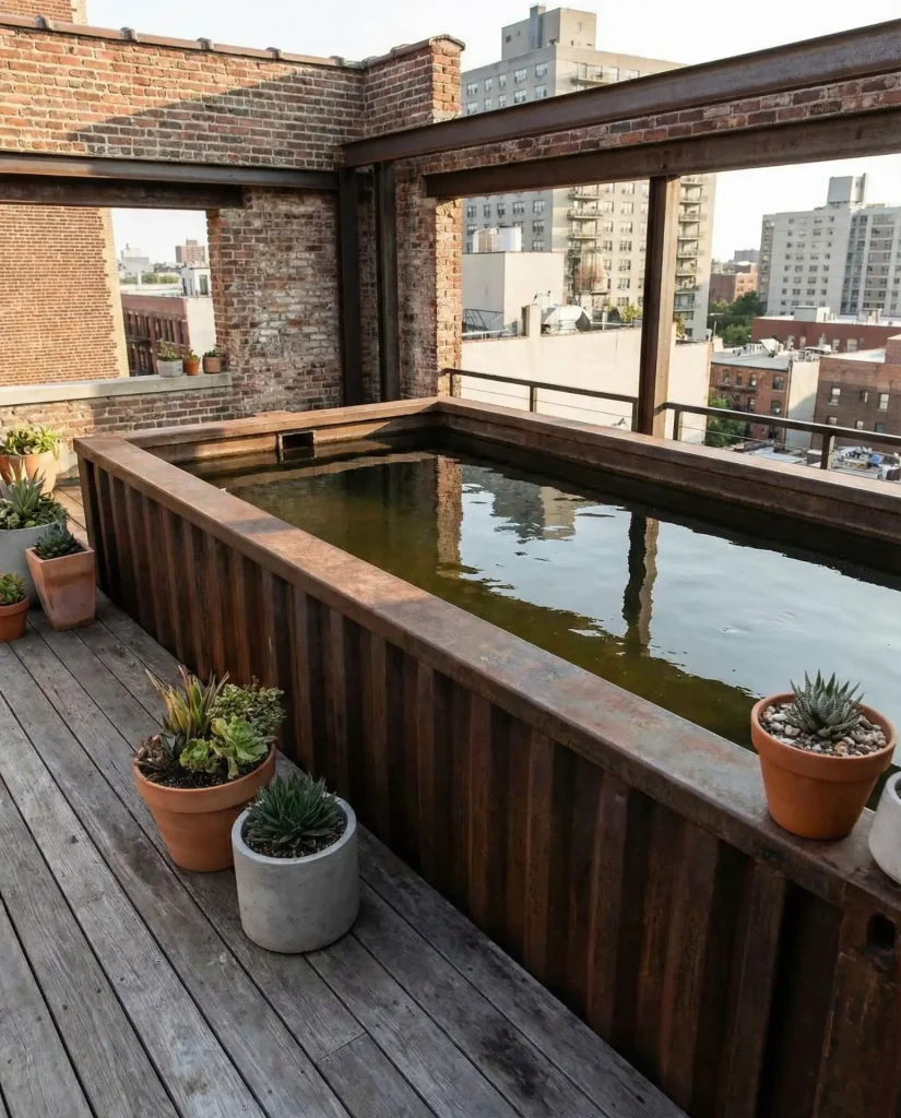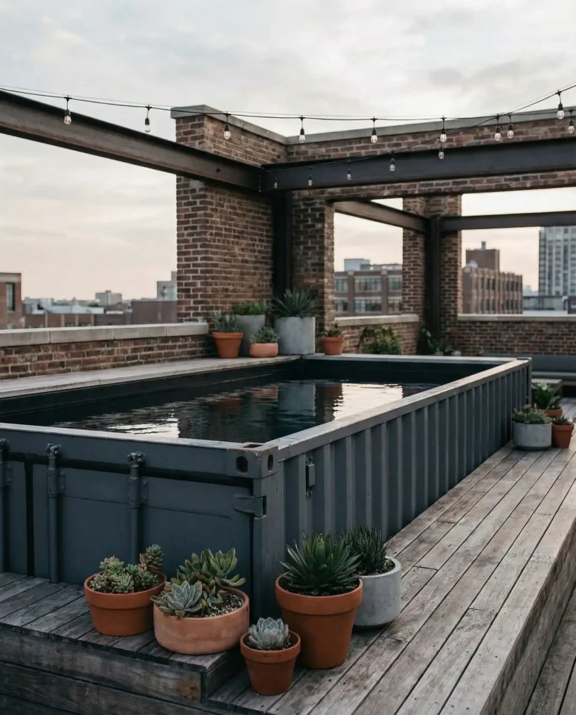 Repurposed shipping containers are being converted into pools, offering a modular, industrial-chic alternative to traditional builds. These containers arrive pre-fitted with filtration systems, and installation is faster since they’re dropped into a prepared excavation site. The ideas budget sits around $25,000 to $40,000, making it competitive with custom inground pools. The corrugated steel walls can be left exposed for an edgy look or clad in wood for a warmer finish. The design ideas here appeal to urban homeowners seeking a modern, unconventional aesthetic.