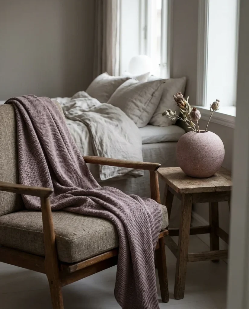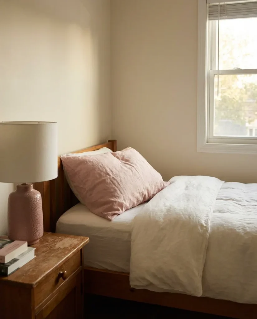 Pink works best as an accent rather than an all-over wall color in small rooms—though a single pink-painted wall or niche can be stunning. Think: a blush linen pillow, a dusty rose ceramic lamp base, and a woven throw in warm rose tones. These small touches accumulate into a cohesive look without the commitment of a full repaint. If you’re nervous about pink, start with bedding or a lampshade—both are easy to swap if the vibe doesn’t land.