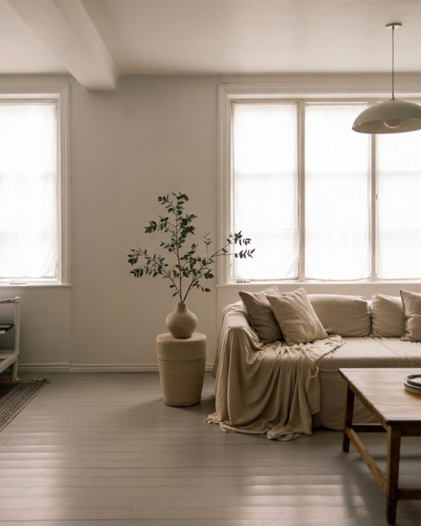 A 450 sq ft studio can be designed to capture open, inviting space that brings in light and calm. Scandinavian design is created using light wood, soft neutral shades, and natural textures. A wooden divider and Zen storage design is a minimalist approach to separating space while keeping the room open to the flow. Thoughtful minimalism is a design strategy to create a cozy and inviting feeling of warmth and welcome to the apartment.
