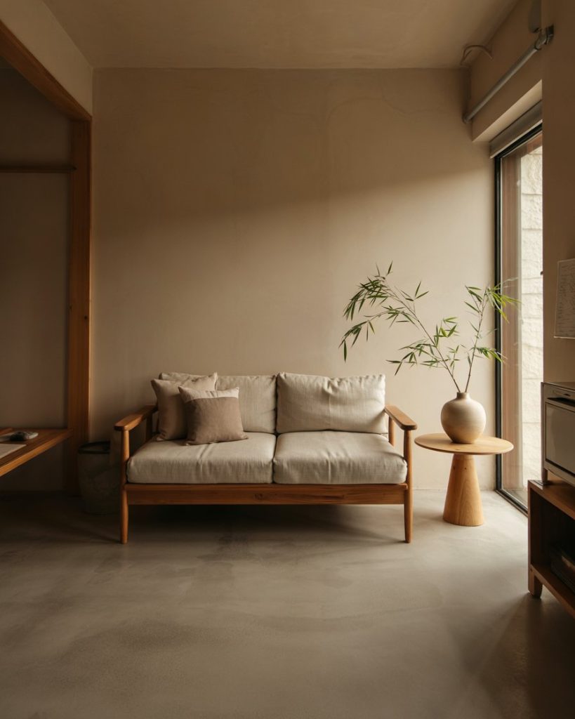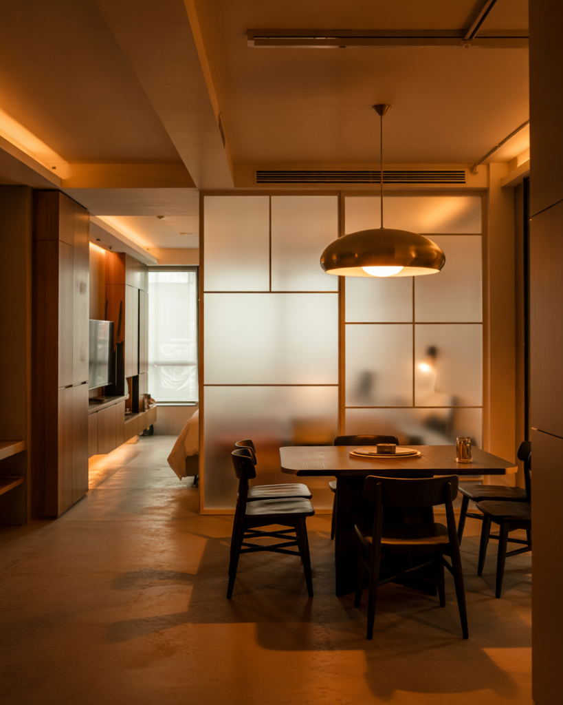 Blending Japanese minimalism with Scandinavian serenity, the Japandi style is ideal for tiny spaces under 450 sq ft. Clean lines, low furniture, and a neutral palette create balance and calm. The layout plan emphasizes open flow, with natural light and simple textures making it cozy and deeply grounding—perfect for a tranquil city refuge.