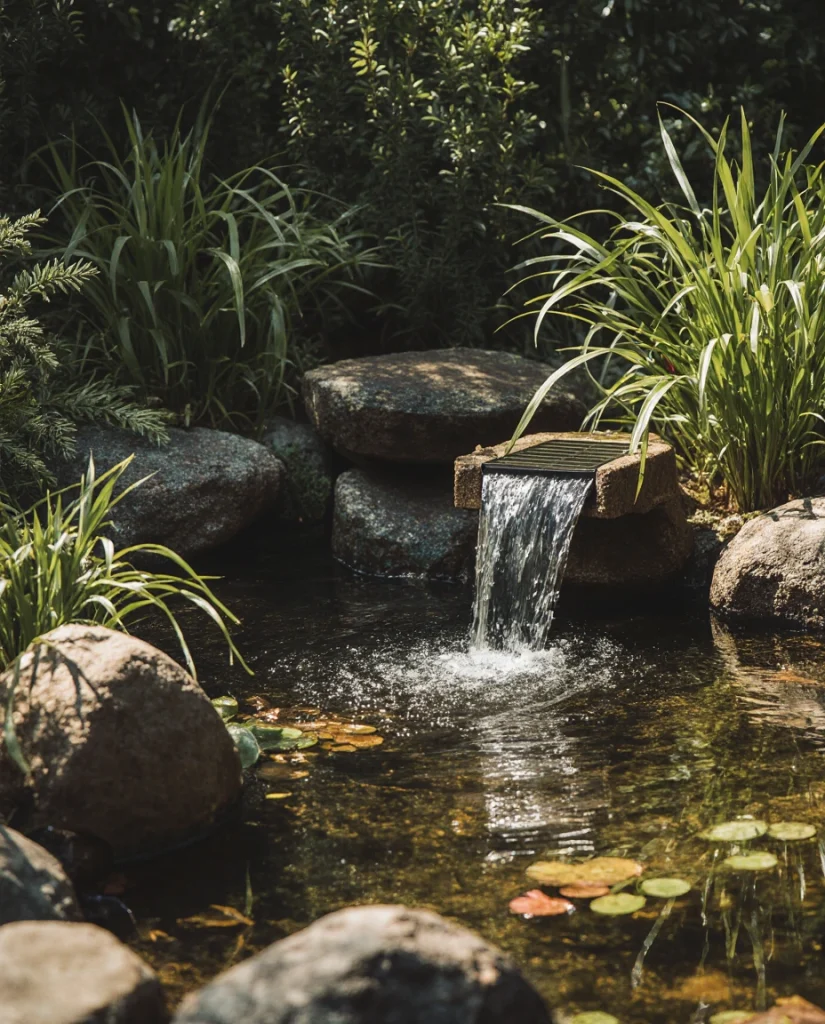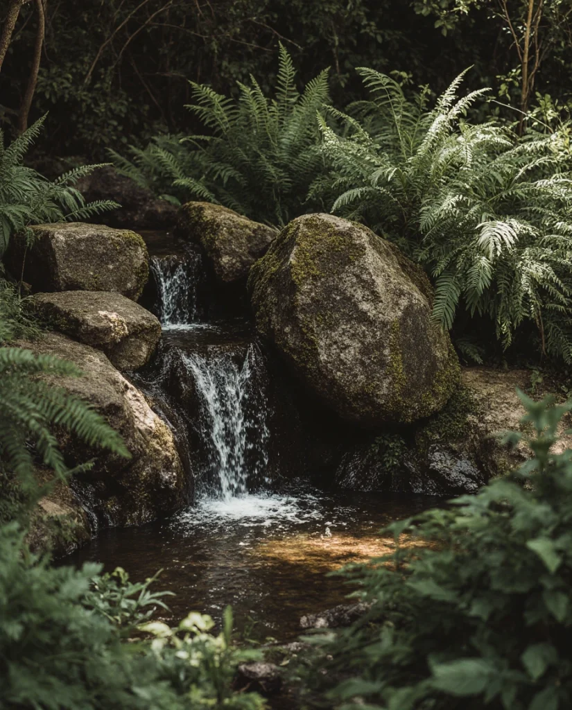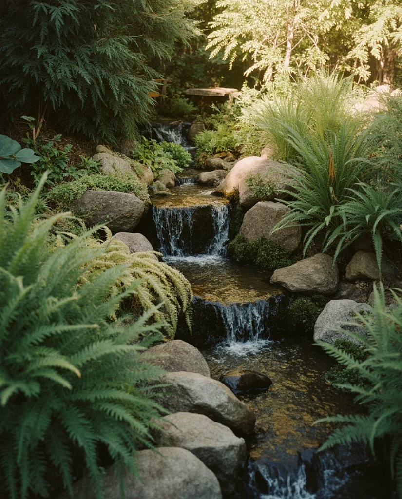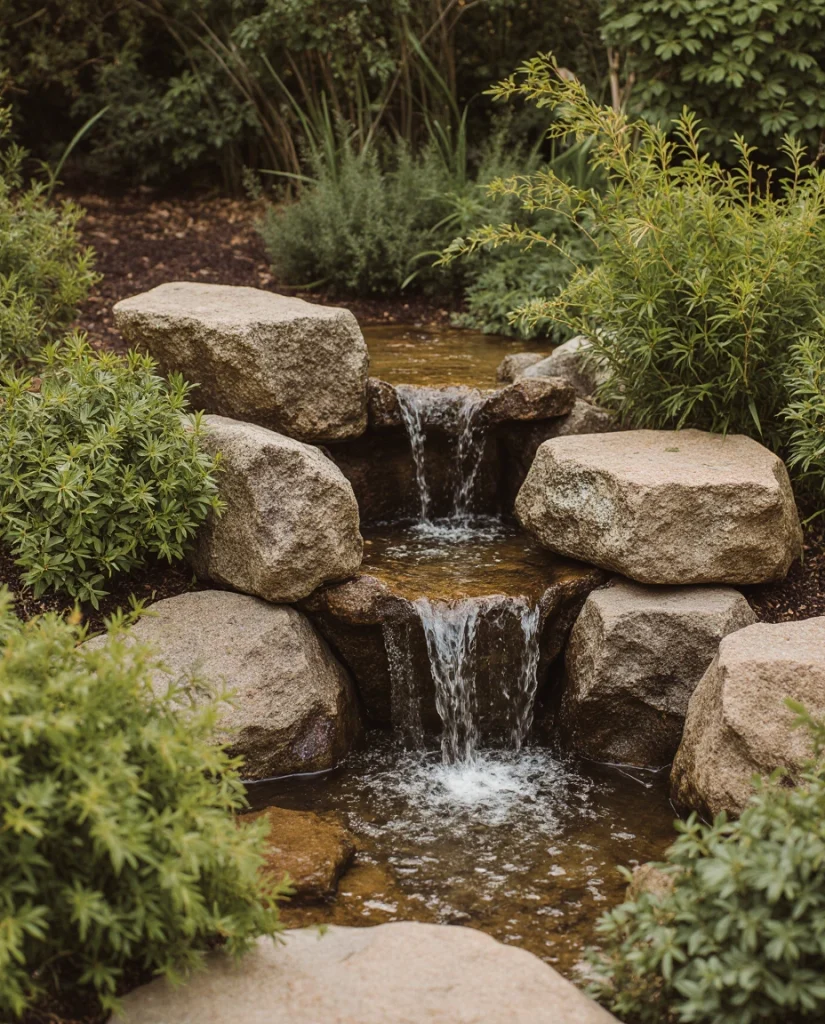 8. Mini Waterfall Garden for Compact Backyards