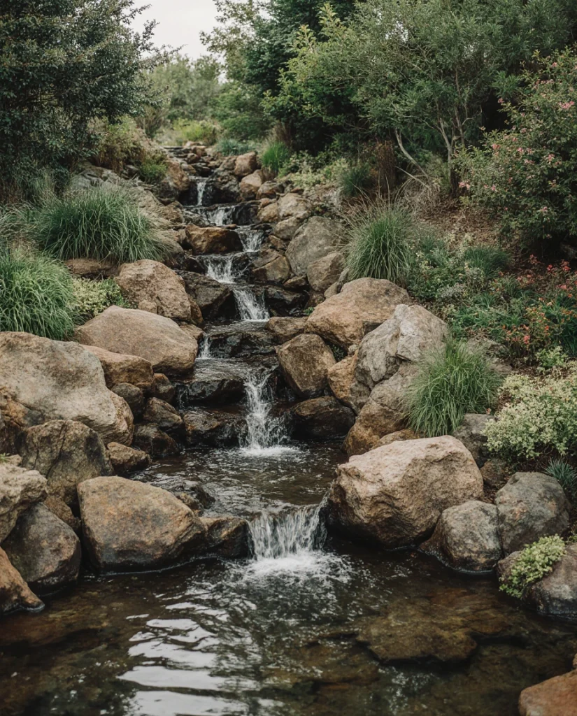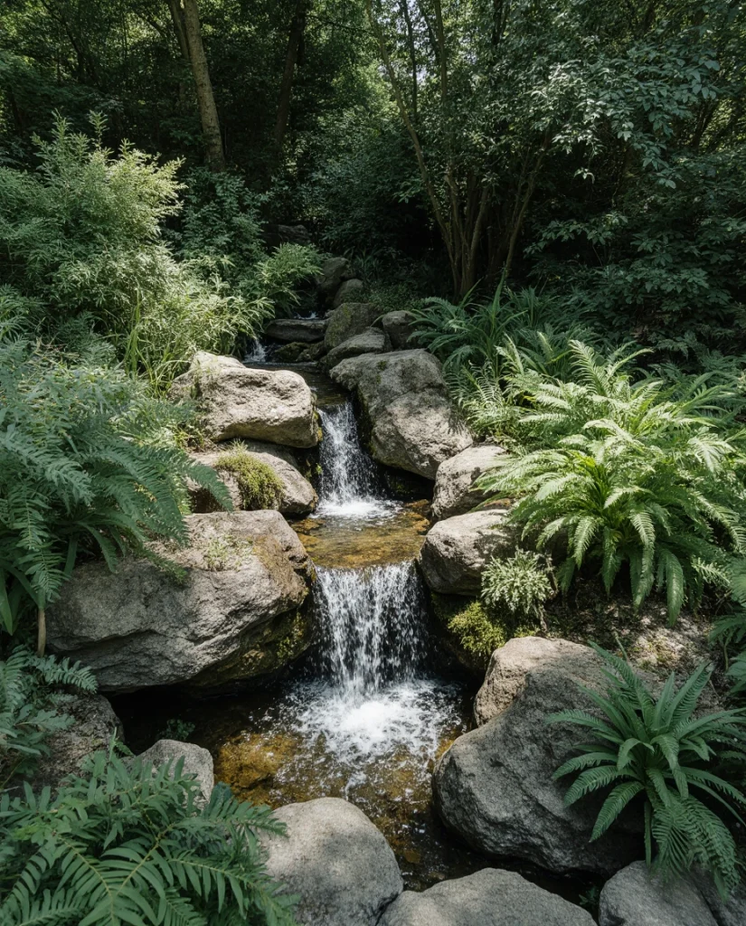 It is remarkable to see how such a mini waterfall garden, made all of layered rock, can transform shaded spaces into nature-empathetic interacenicals. Sheepishly knitting around the rock, the water cascades and tumbles amongst the turves, as was its original intent. For people with limited areas, these designs integrate with horticultural ideas and help introduce movement without swallowing space. A good idea for turning the neglected corner into a quiet retreat.